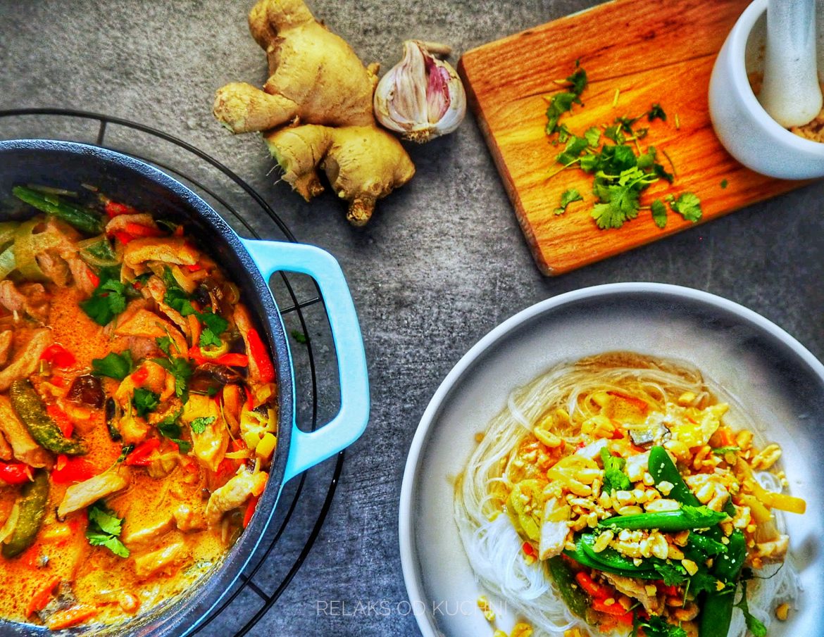 Całość podałam z makaronem ryżowym i muszę powiedzieć, że ta wieprzowina w sosie orzechowym była po prostu pyszna! A dlaczego jakby chińska? Jakoś mleczko kokosowe bardziej kojarzy mi się z kuchnią indyjską, ale mi tu brakowało właśnie tej konsystencji sosu i zrównoważenia wyraźnego smaku orzeszków.